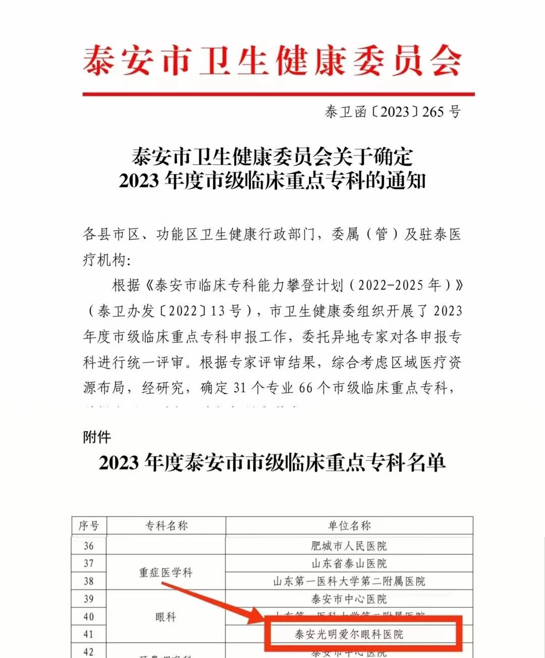喜報!泰安光明愛爾眼科醫(yī)院評審為市級臨床重點(diǎn)專科!